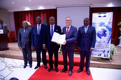 Le Ministre d'Etat, en Charge de L'Economie numérique a procédé ce matin, en présence de ses collègues membres du gouvernement, pour le compte de la République Gabonaise, à la signature avec Korea Telecom, du contrat devant ouvrir les travaux d’extension de la Phase 1 du Backbone National Fibre Optique, entre Booué et les frontières du Cameroun et de la Guinée-équatoriale au nord du Gabon.